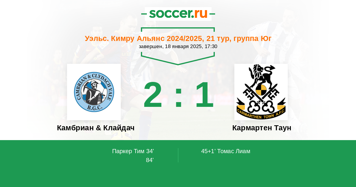 Протокол матча Камбриан & Клайдач против Кармартен Таун
