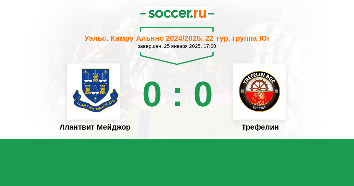 История матча Ллантвит Мейджор против Трефелин