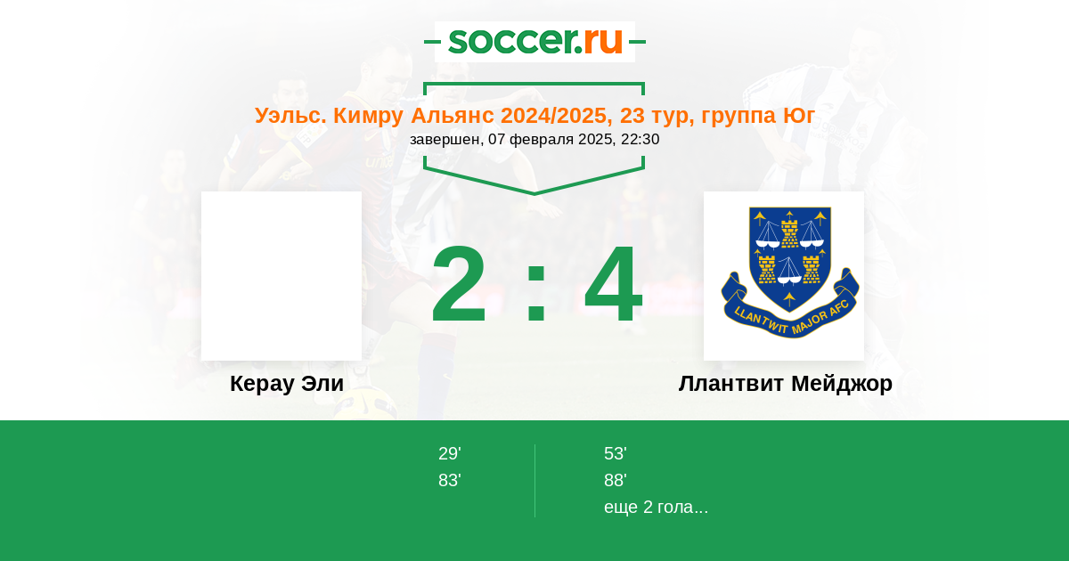 Протокол матча Керау Эли против Ллантвит Мейджор