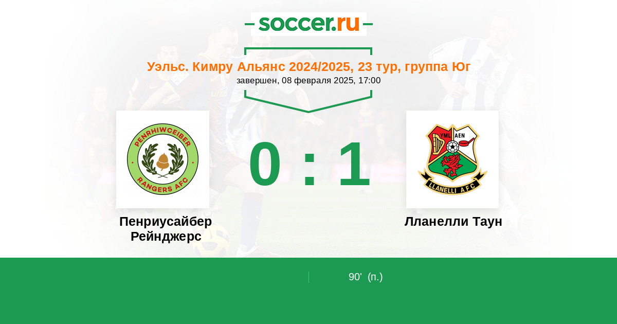 Протокол матча Пенриусайбер Рейнджерс против Лланелли Таун