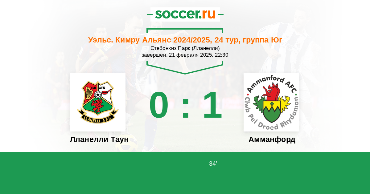 Протокол матча Лланелли Таун против Амманфорд
