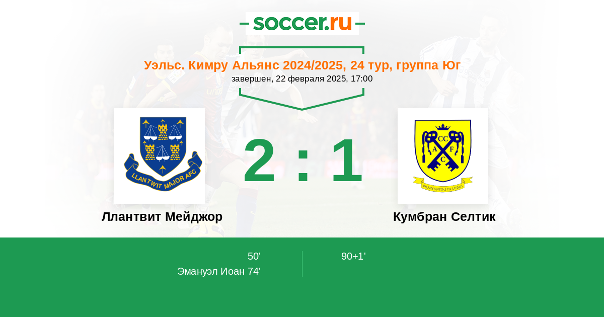 Протокол матча Ллантвит Мейджор против Кумбран Селтик
