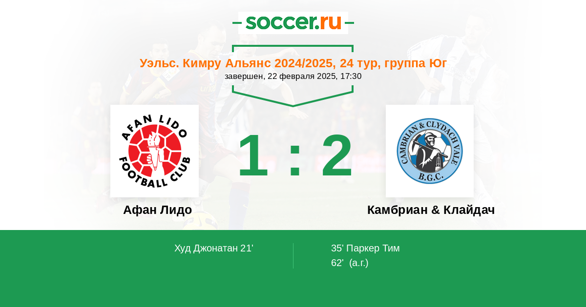 Протокол матча Афан Лидо против Камбриан & Клайдач