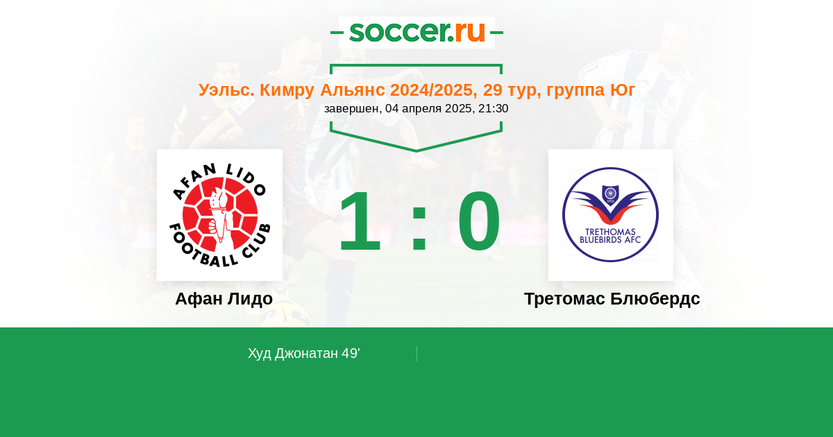 Протокол матча Афан Лидо против Третомас Блюбердс
