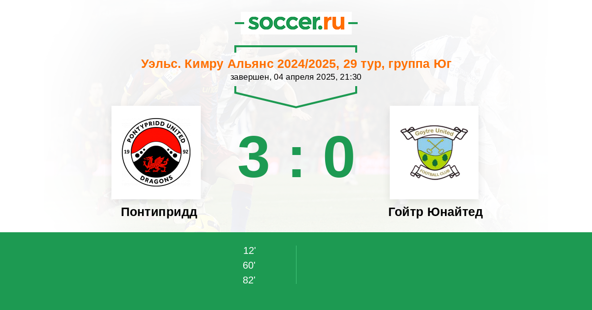 Протокол матча Понтипридд против Гойтр Юнайтед