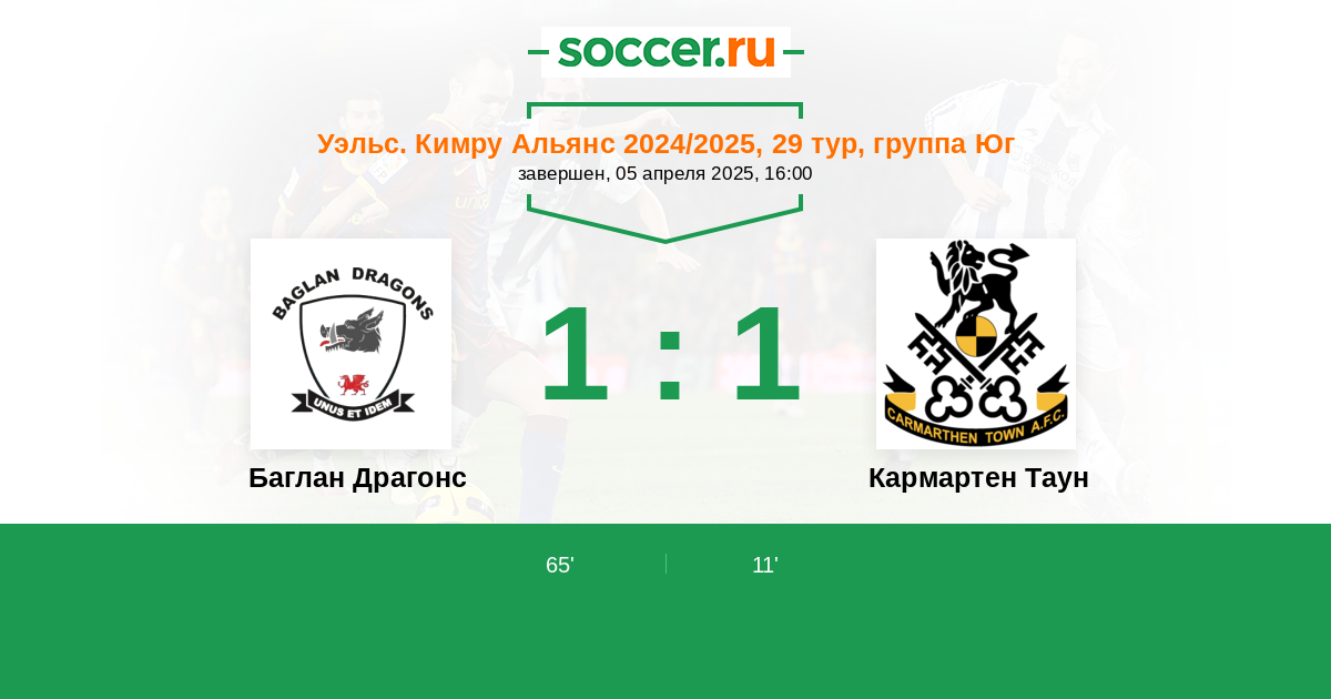 Протокол матча Баглан Драгонс против Кармартен Таун