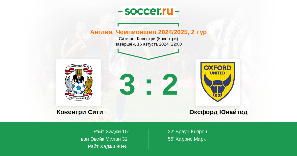 Протокол матча Ковентри Сити против Оксфорд Юнайтед