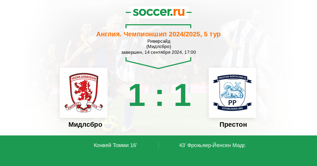 Протокол матча Мидлсбро против Престон
