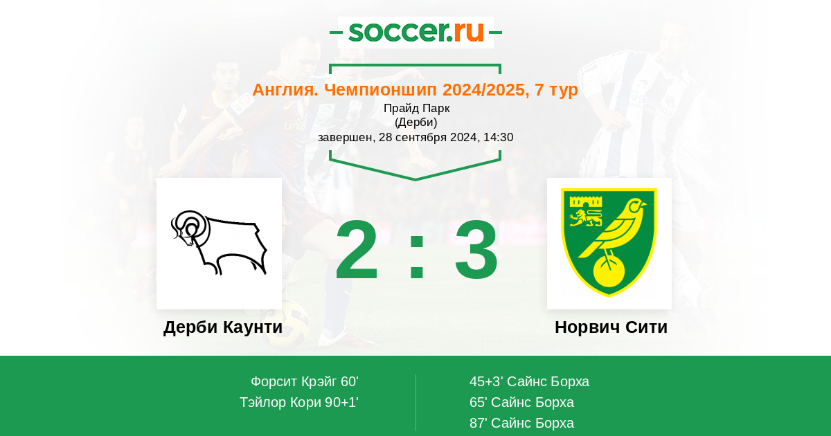 Протокол матча Дерби Каунти против Норвич Сити