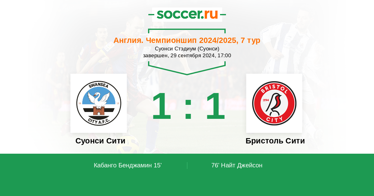 Протокол матча Суонси Сити против Бристоль Сити
