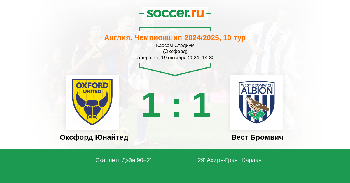 Протокол матча Оксфорд Юнайтед против Вест Бромвич