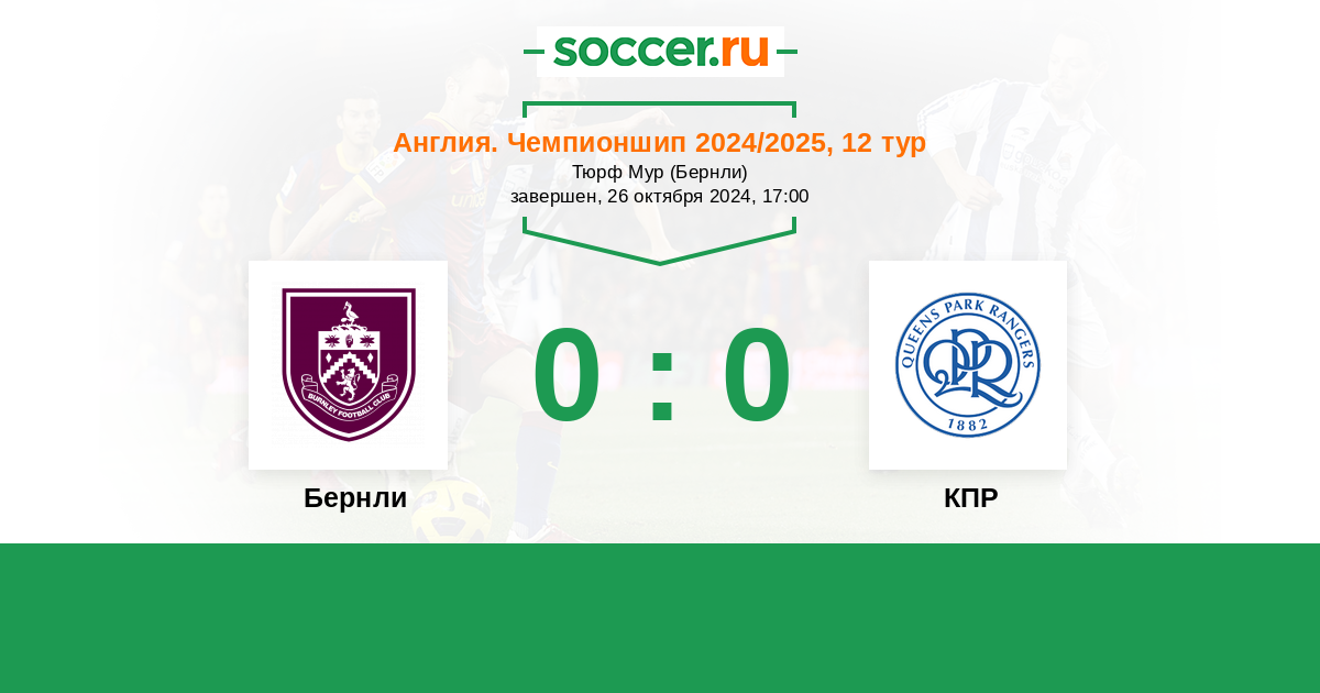 Бёрнли выглядит намного сильнее своих сегодняшних соперников, с большой вероятностью одержит на своём поле уверенную победу на классе над КПР и наверняка должен порадовать своих поклонников хотя бы одним забитым голом
