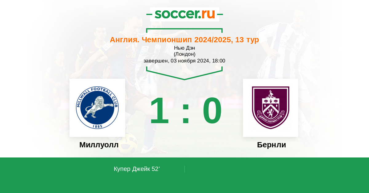 52' (1:0) Купер Джейк (5) (Азиз Феми (11))