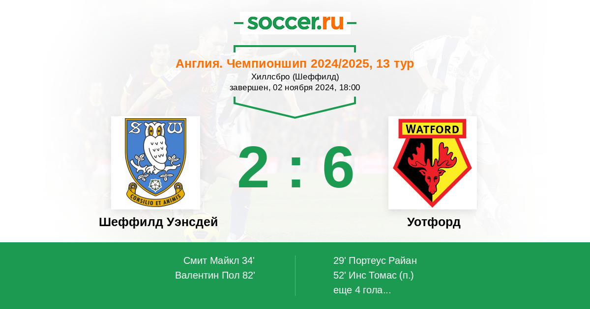 Протокол матча Шеффилд Уэнсдей против Уотфорд