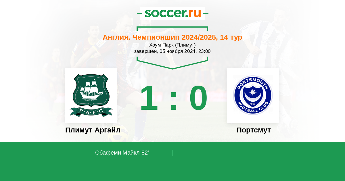 Протокол матча Плимут Аргайл против Портсмут