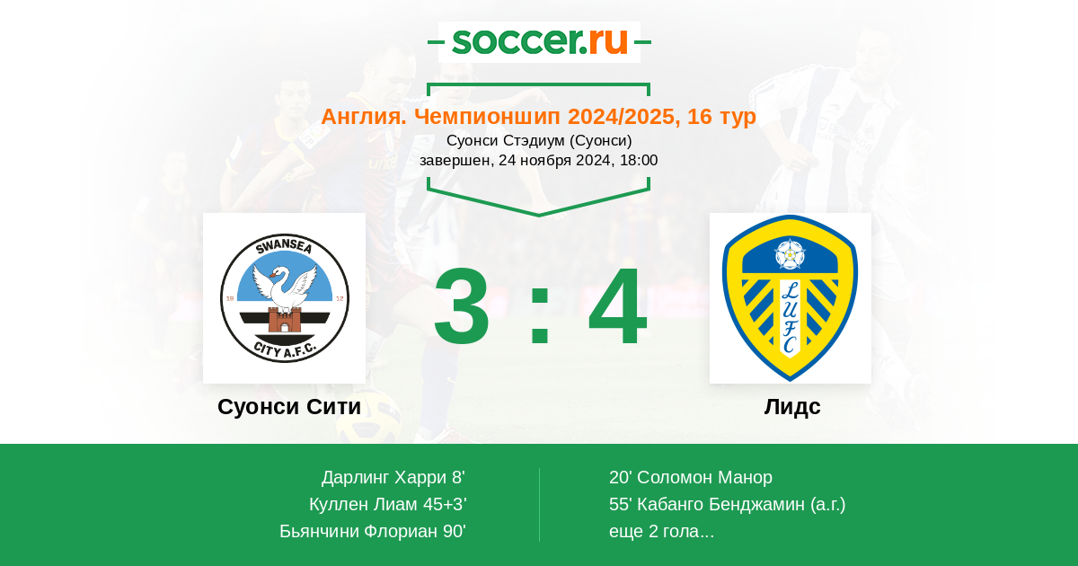 Протокол матча Суонси Сити против Лидс