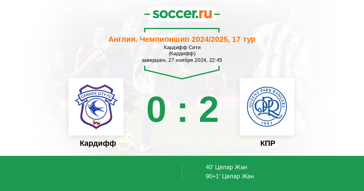40' (0:1) Целар Жан (18) (Данн Джимми (3))