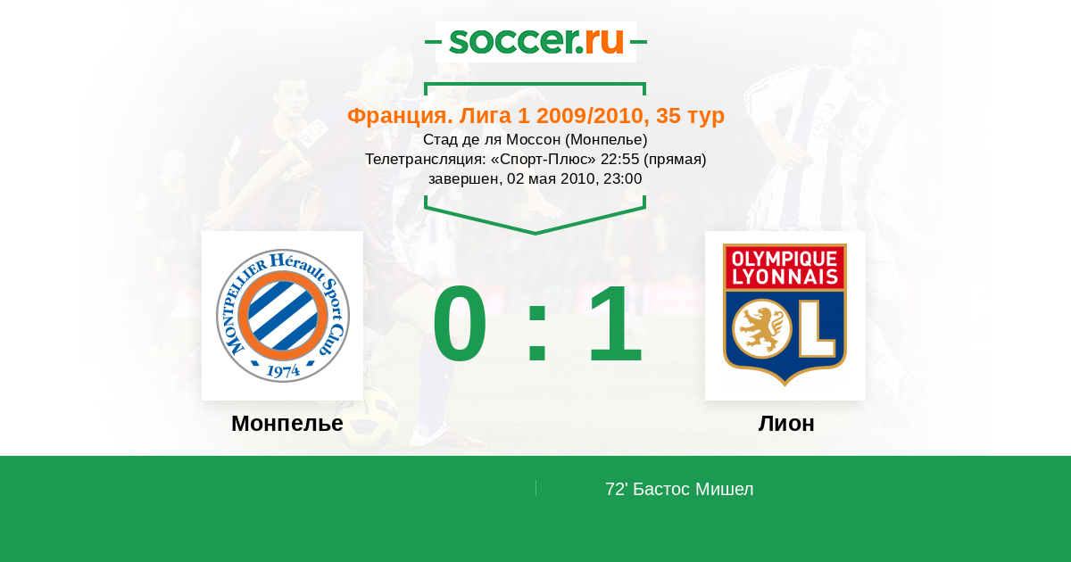 Протокол матча Монпелье против Лион