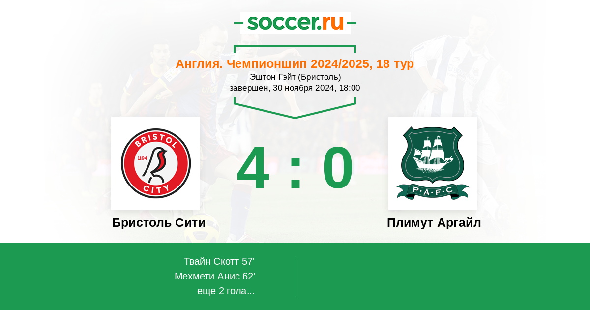 Протокол матча Бристоль Сити против Плимут Аргайл