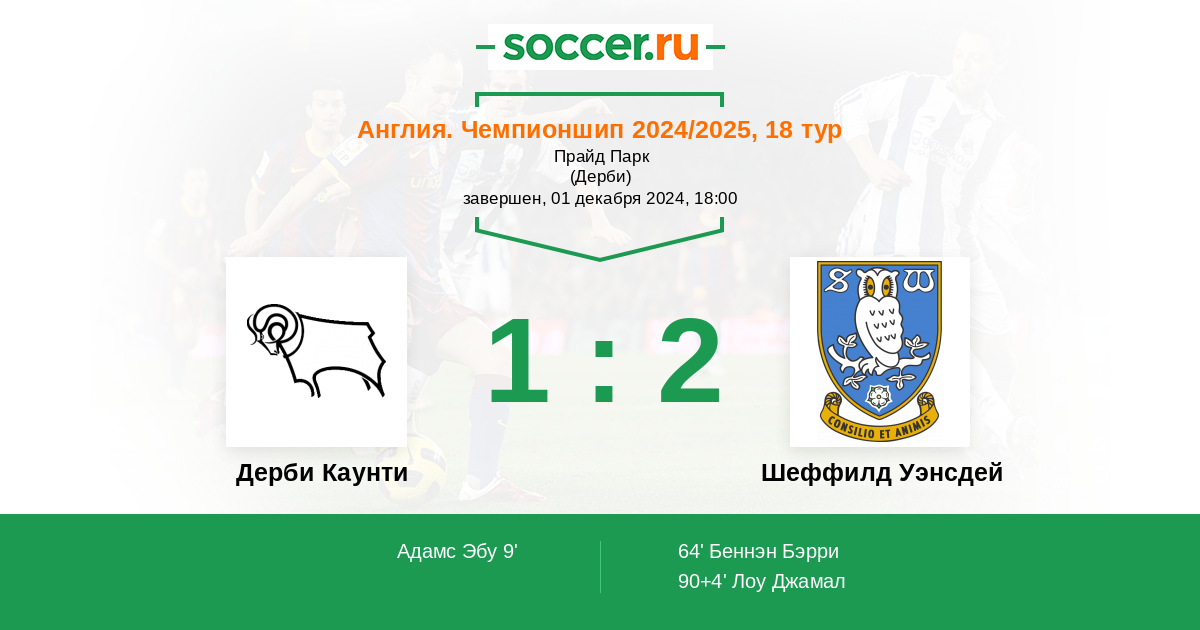 Протокол матча Дерби Каунти против Шеффилд Уэнсдей