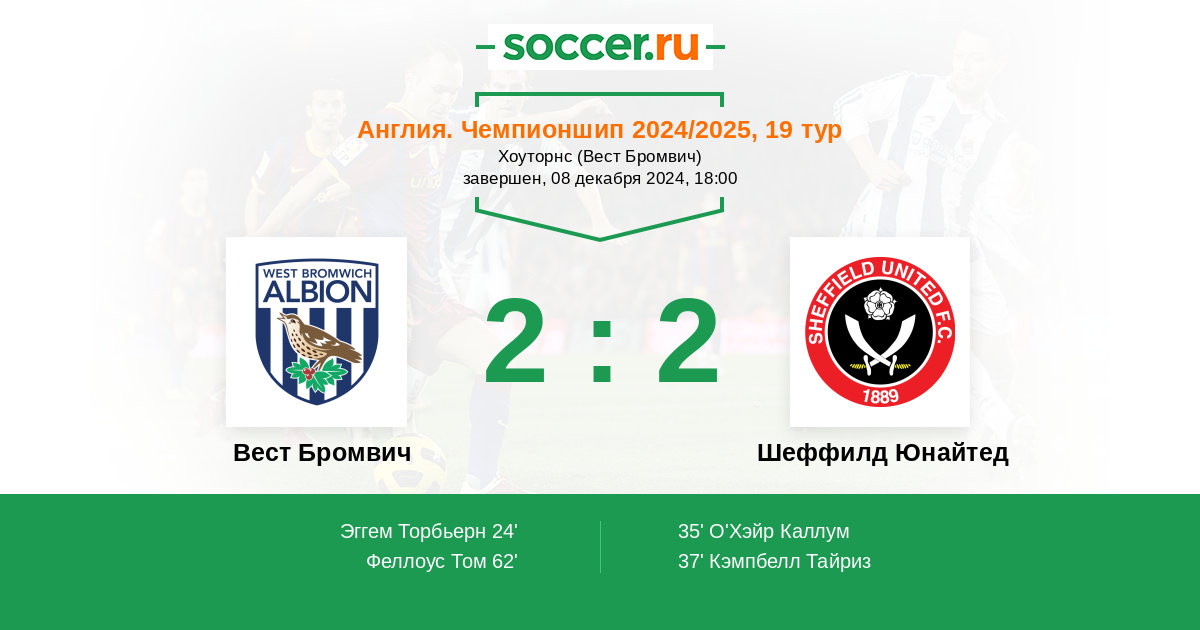 Протокол матча Вест Бромвич против Шеффилд Юнайтед