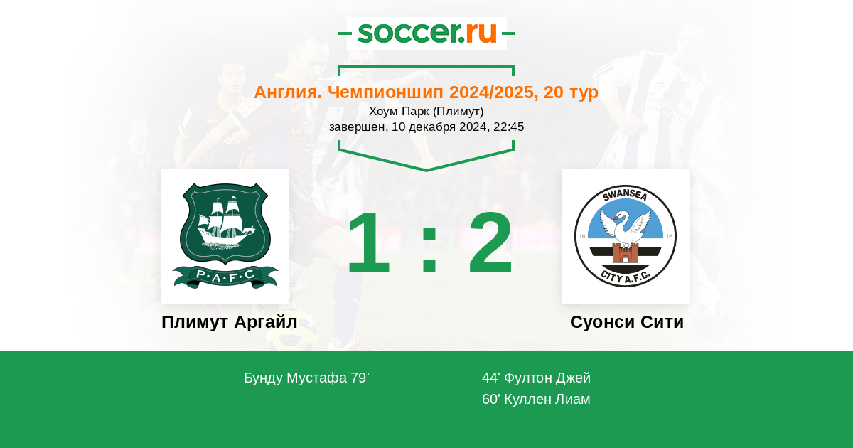 Протокол матча Плимут Аргайл против Суонси Сити