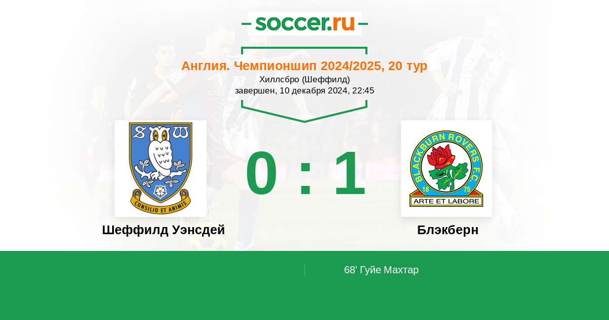 Протокол матча Шеффилд Уэнсдей против Блэкберн