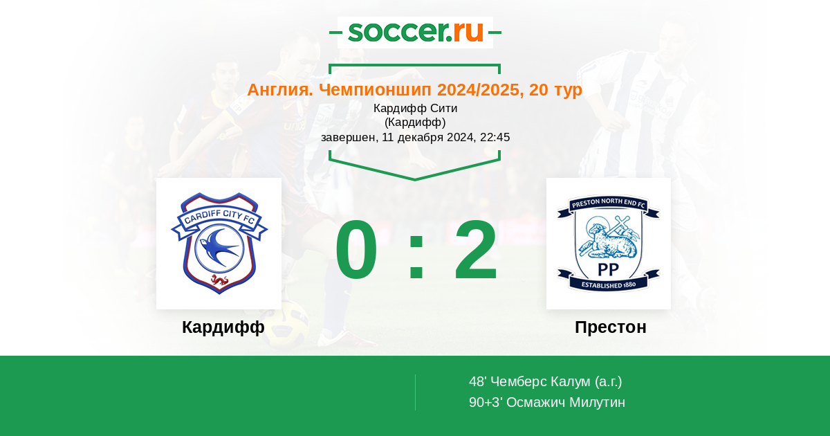 Протокол матча Кардифф против Престон