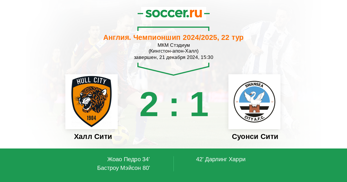 Протокол матча Халл Сити против Суонси Сити