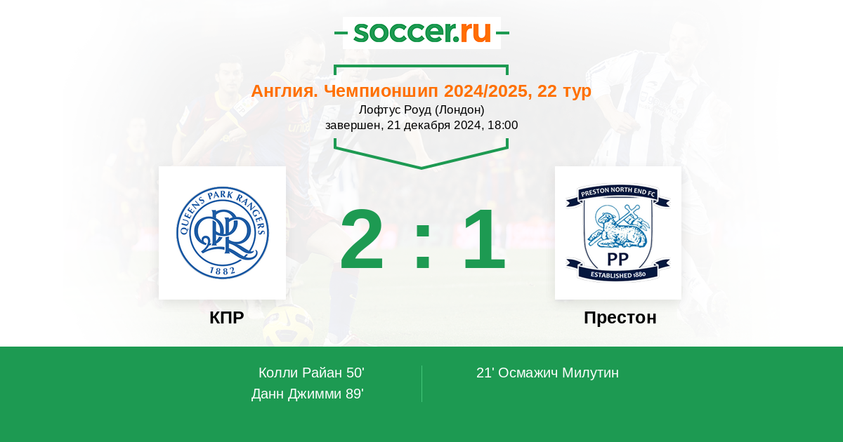 21' (0:1) Осмажич Милутин (28) (Линсдей Лайэм (6))