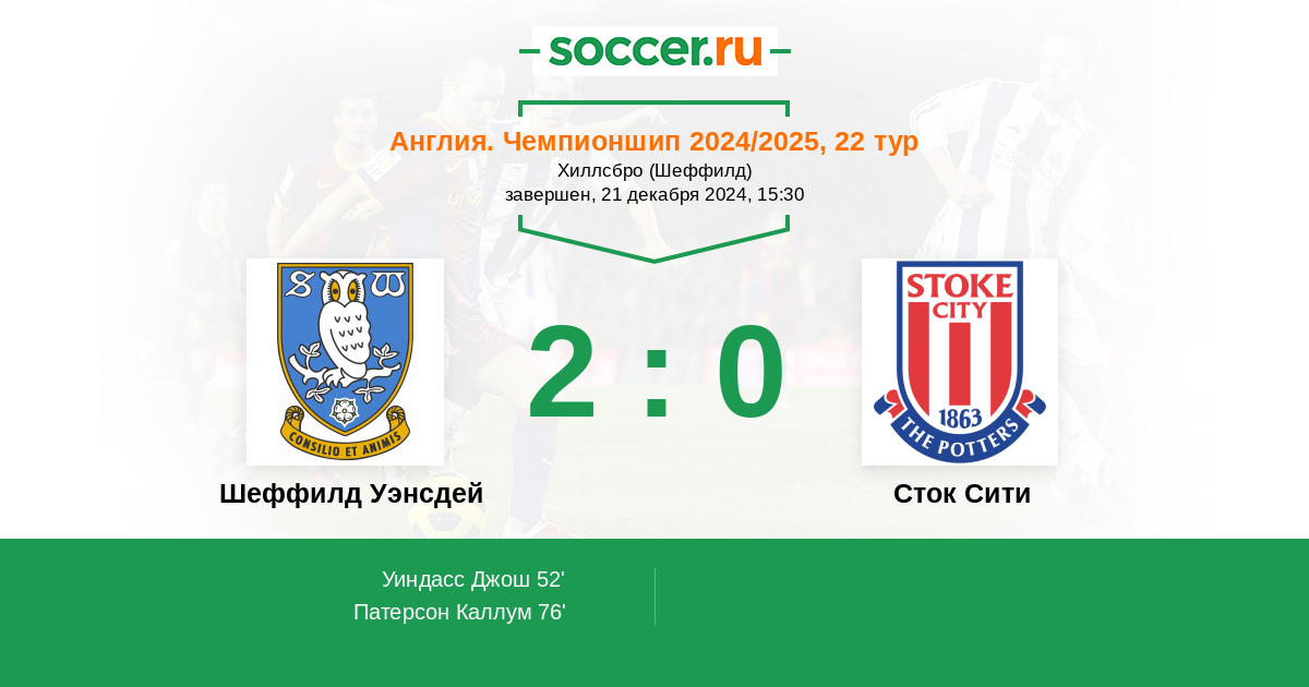 Протокол матча Шеффилд Уэнсдей против Сток Сити