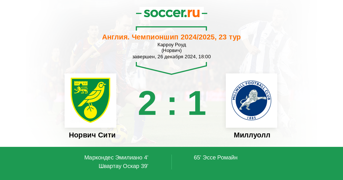 Протокол матча Норвич Сити против Миллуолл