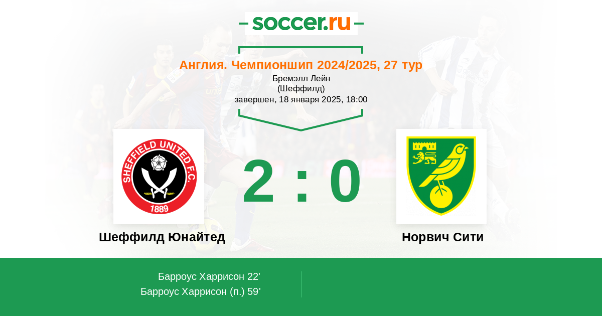 Протокол матча Шеффилд Юнайтед против Норвич Сити