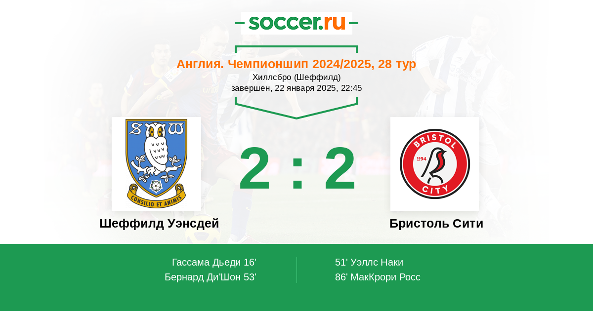 Протокол матча Шеффилд Уэнсдей против Бристоль Сити
