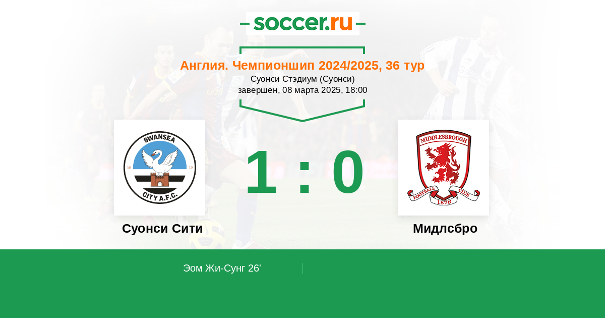 Протокол матча Суонси Сити против Мидлсбро