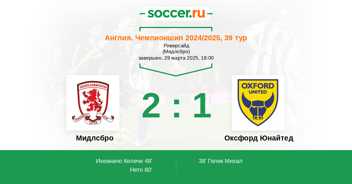 Протокол матча Мидлсбро против Оксфорд Юнайтед