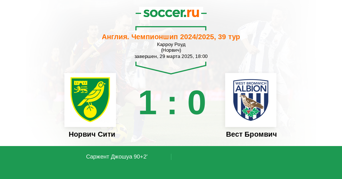 Протокол матча Норвич Сити против Вест Бромвич