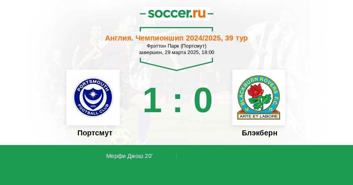 Протокол матча Портсмут против Блэкберн