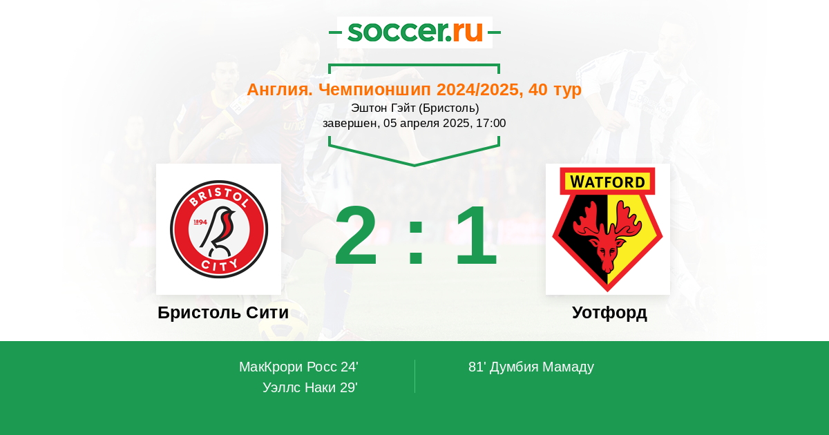 Протокол матча Бристоль Сити против Уотфорд