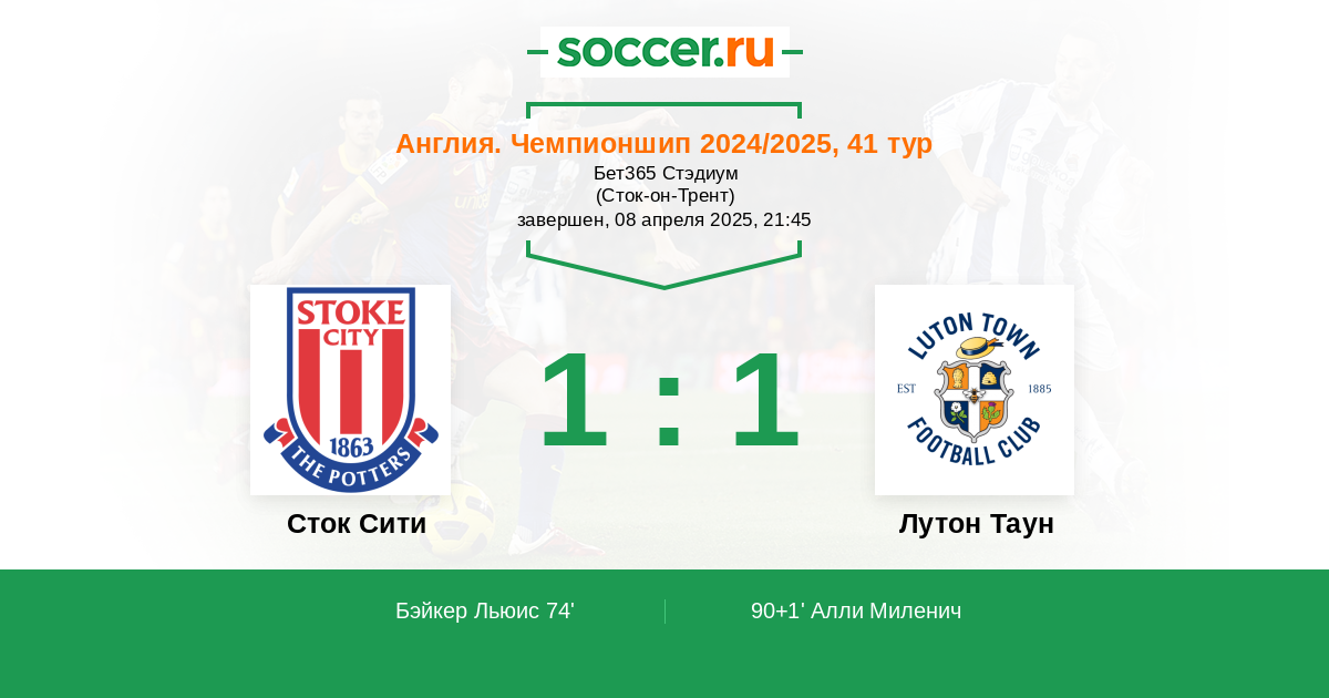 Протокол матча Сток Сити против Лутон Таун