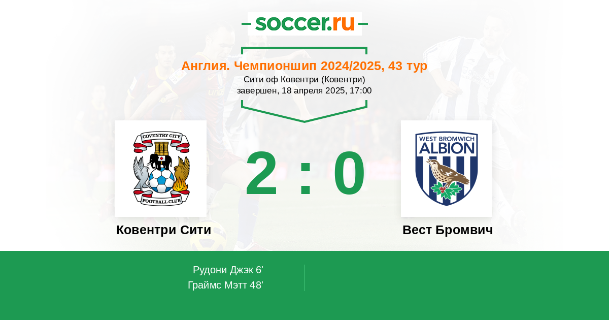 Протокол матча Ковентри Сити против Вест Бромвич