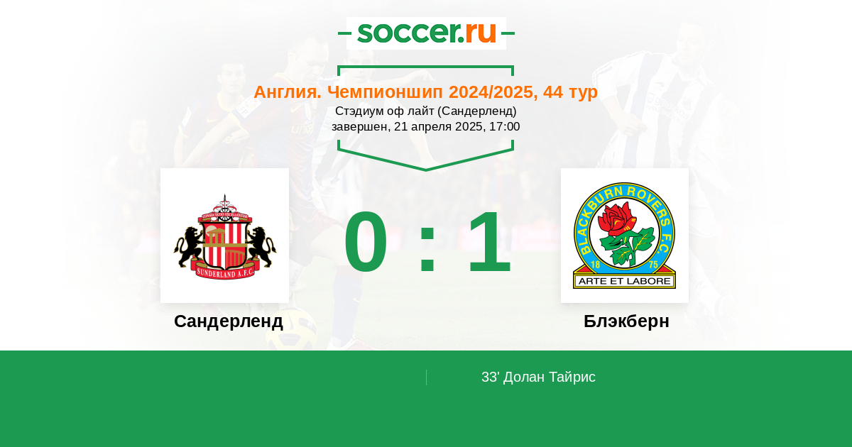 Протокол матча Сандерленд против Блэкберн