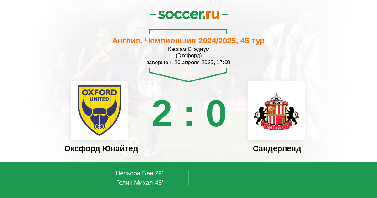 Протокол матча Оксфорд Юнайтед против Сандерленд