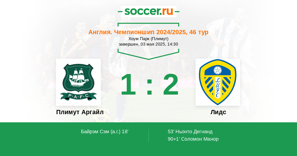 Протокол матча Плимут Аргайл против Лидс