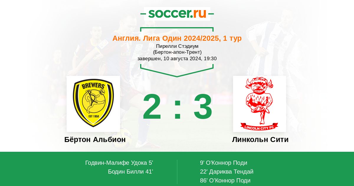 Протокол матча Бёртон Альбион против Линкольн Сити