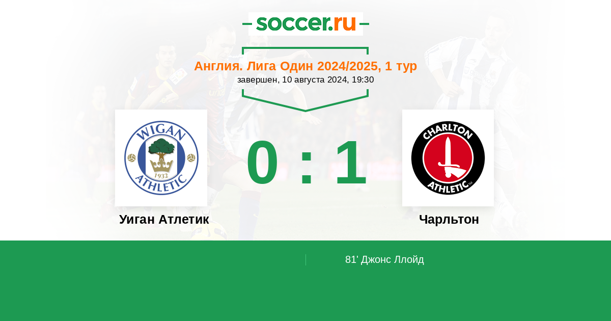 Протокол матча Уиган Атлетик против Чарльтон
