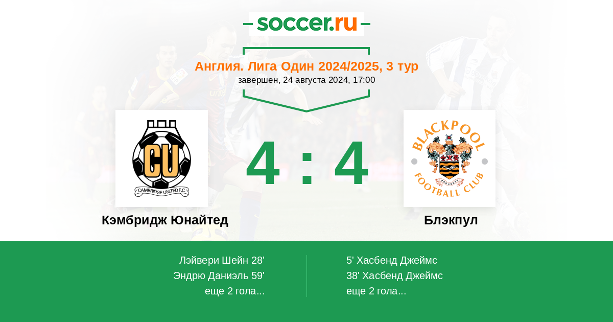 Протокол матча Кэмбридж Юнайтед против Блэкпул