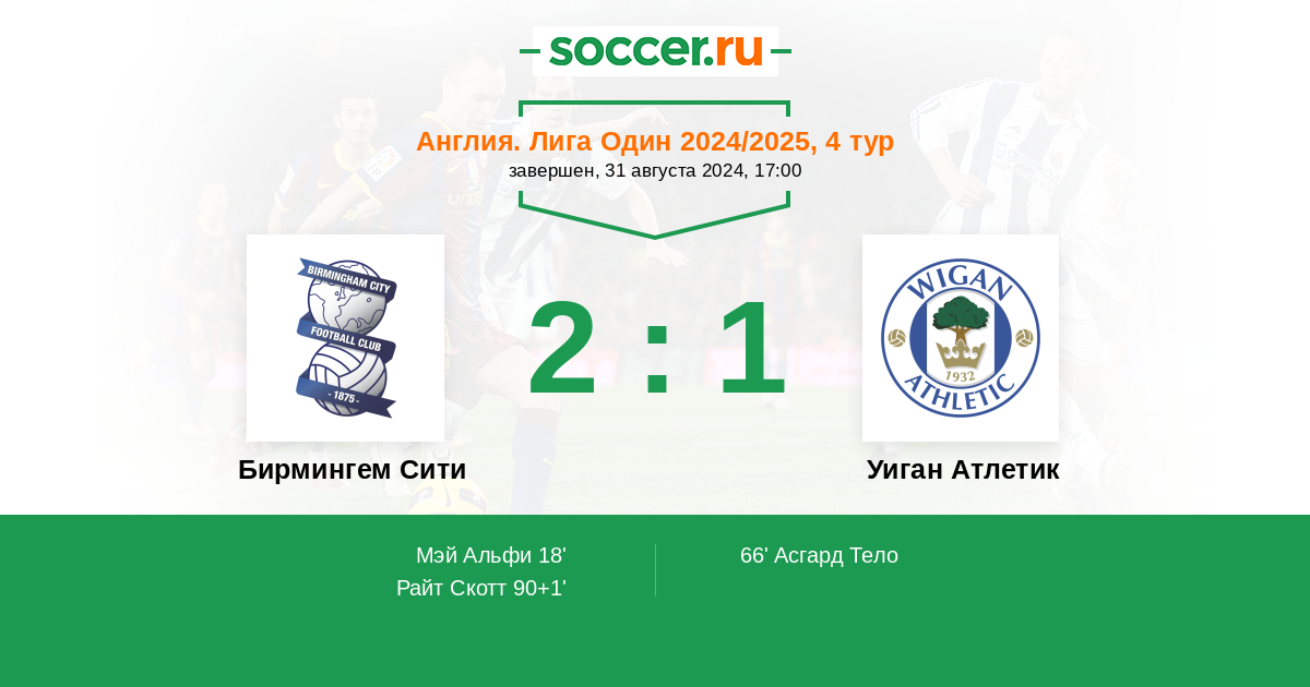 Протокол матча Бирмингем Сити против Уиган Атлетик
