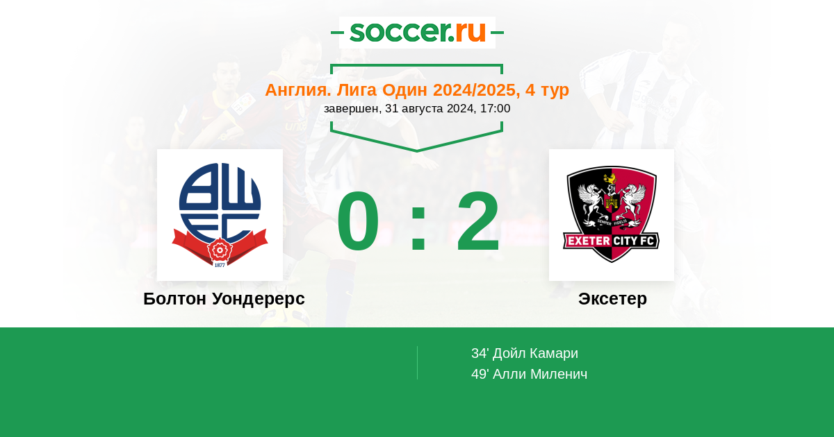 Протокол матча Болтон Уондерерс против Эксетер