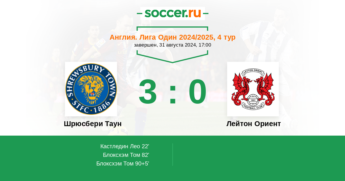 Протокол матча Шрюсбери Таун против Лейтон Ориент